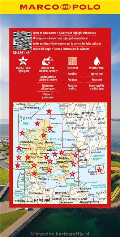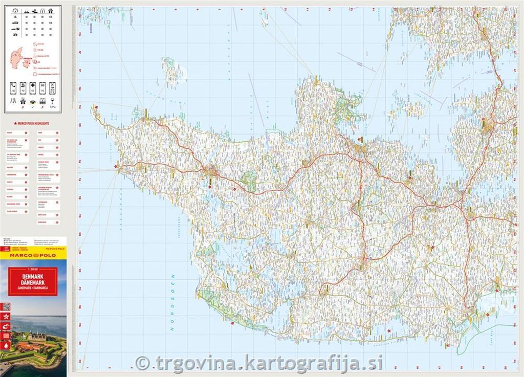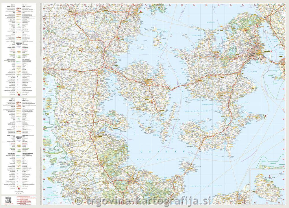Avtokarta območja Danske v merilu 1:350.000.