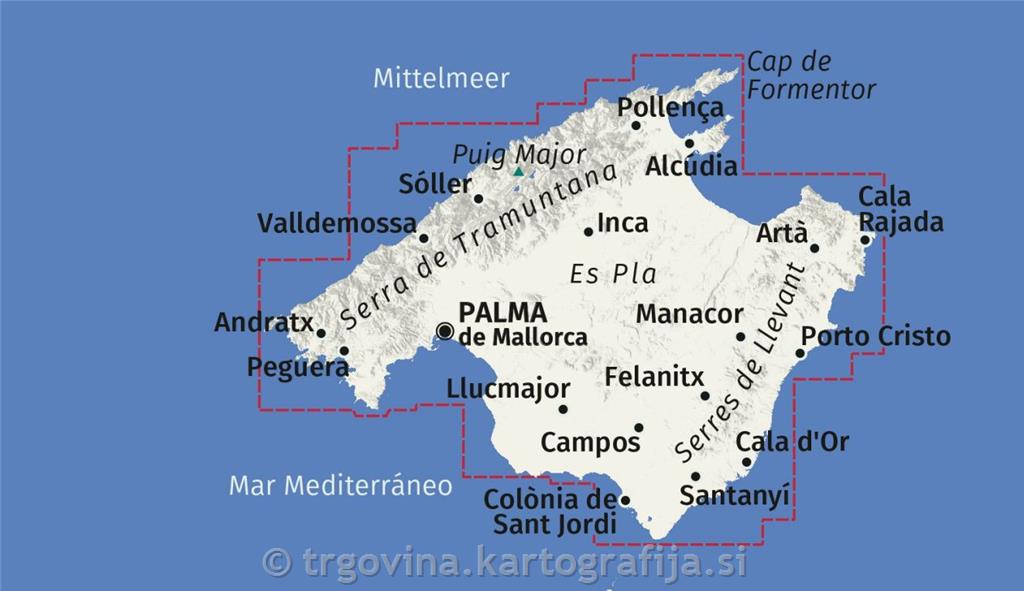 Zanesljiv in pregleden kartni set, ki omogoča enostavno orientacijo ter brezskrbno raziskovanje Mallorce – od obale do gorskih poti.