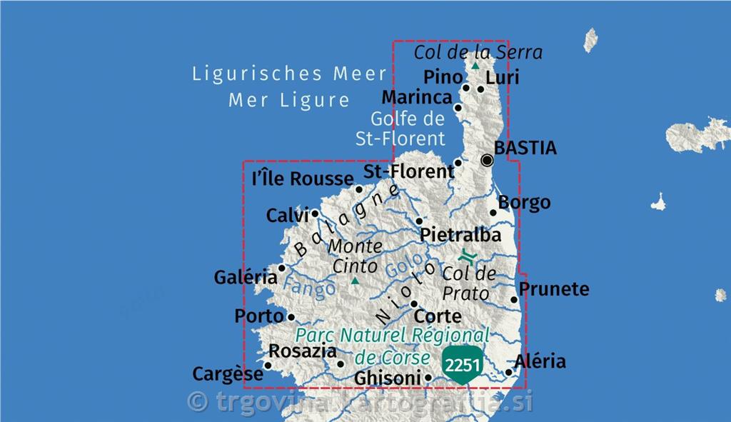 Planinska karta severnega dela Korzike v merilu 1:50.000.